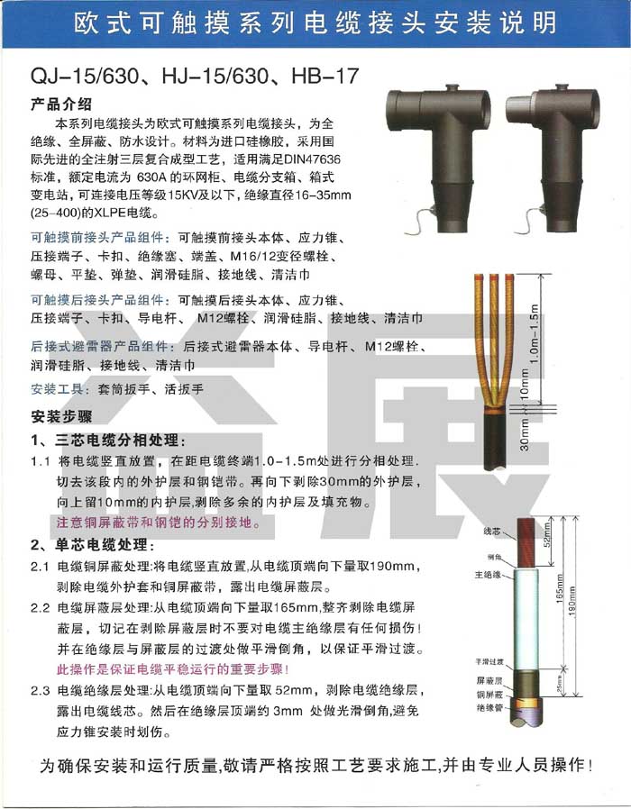 可觸摸歐式避雷器產品特點:先進的后注射工藝,外層有起屏蔽作用的半導電層,可觸摸,確保人身安全。獨特的盈利在結構,有效地疏散電場應力,解決電纜屏蔽層切斷處電場應力問題。可擴展性,拆裝靈活。可完成電纜的T型連接,全密封,全絕緣,全防護,免維護,抗淹沒,抗污穢。