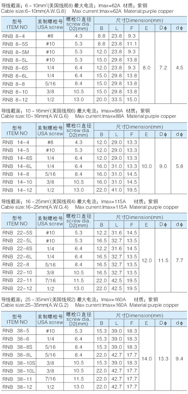 RNB圓形裸端頭 Home您現在的位置:網站首頁 >> 產品中心 >> 冷壓端子