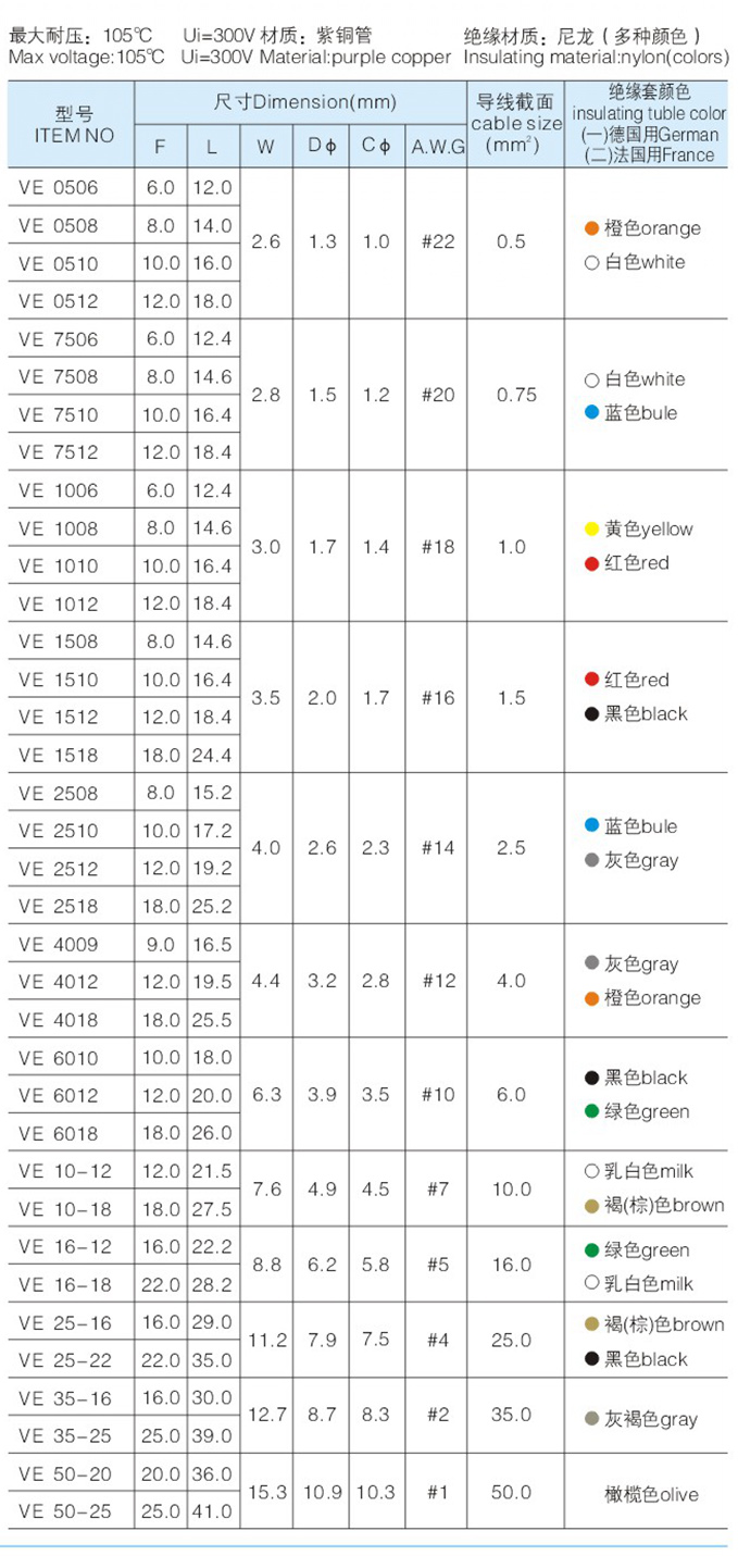 VE管型預絕緣端子 Home您現在的位置:網站首頁 >> 產品中心 >> 冷壓端子