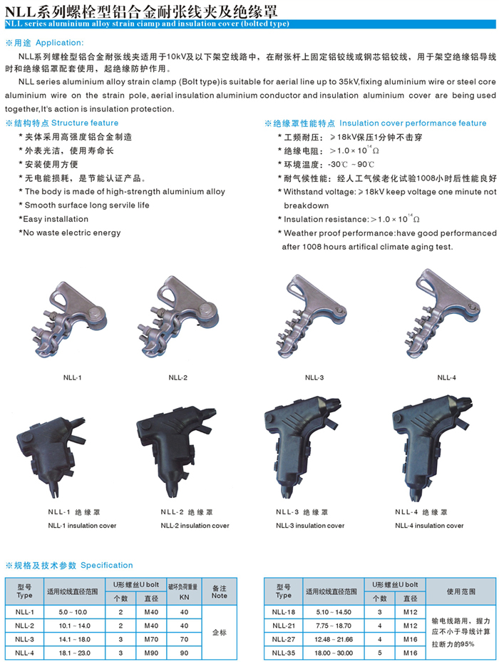 螺栓型鋁合金耐張線夾及絕緣罩(NLL) Home您現在的位置:網站首頁 >> 產品中心 >> 金具線夾系列